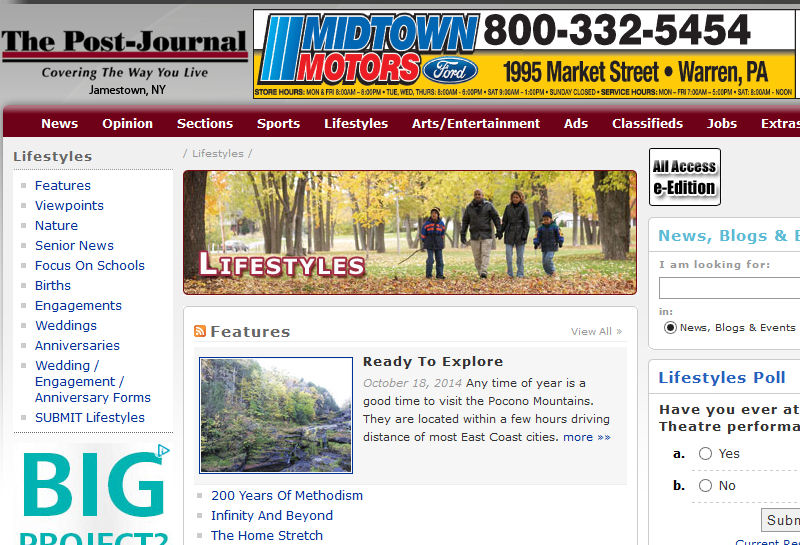 Jamestown also serves as the center of a region blessed with an abundance of outstanding outdoor recreational opportunities, including hunting, fishing, boating and camping opportunities and the 65,000 acre Allegany State Park.